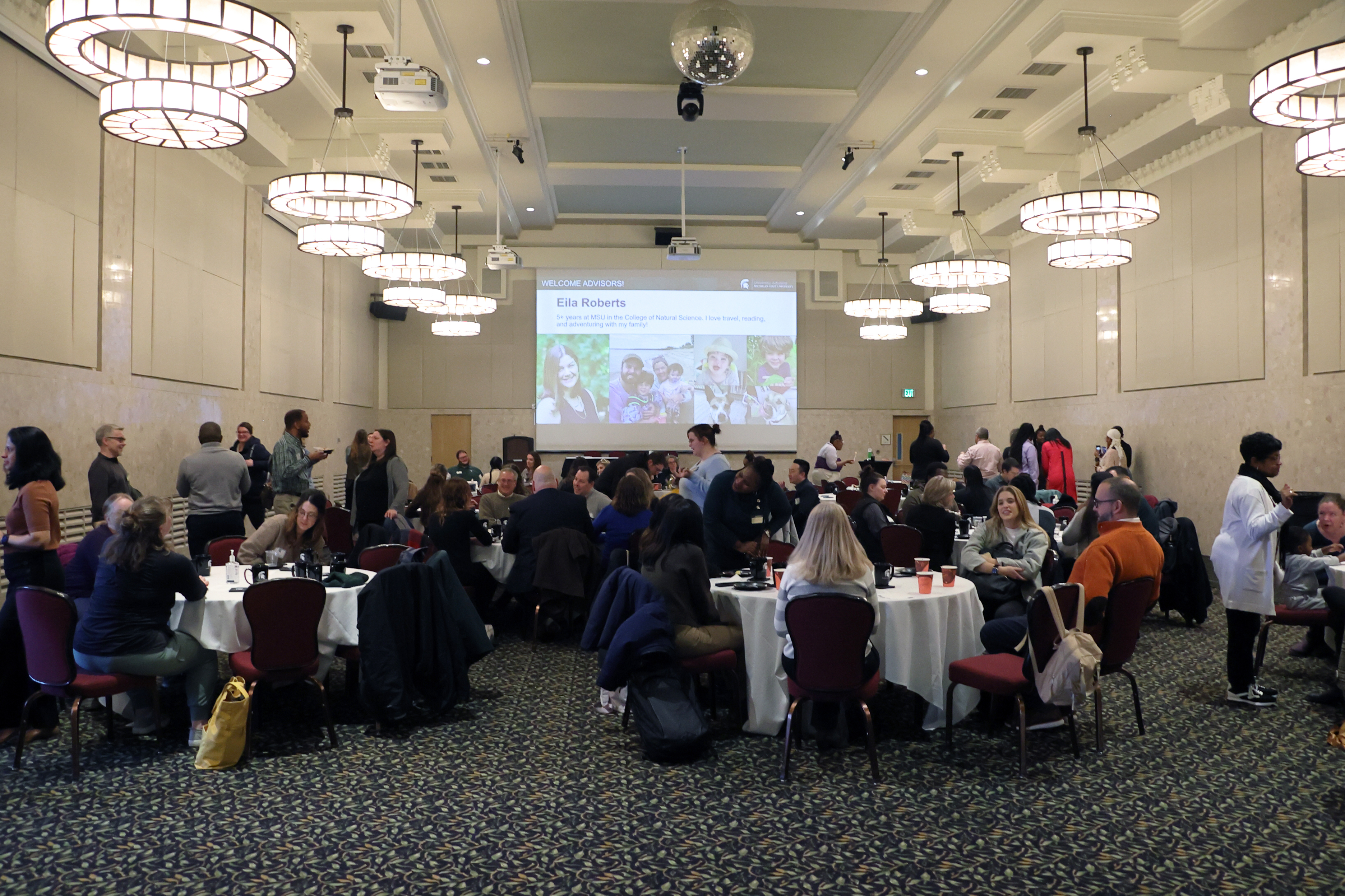 With the formal ceremony concluded, all attendees were welcomed to socialize during a networking period while “getting to know you” slides of MSU academic advisors were shared on the main screen.