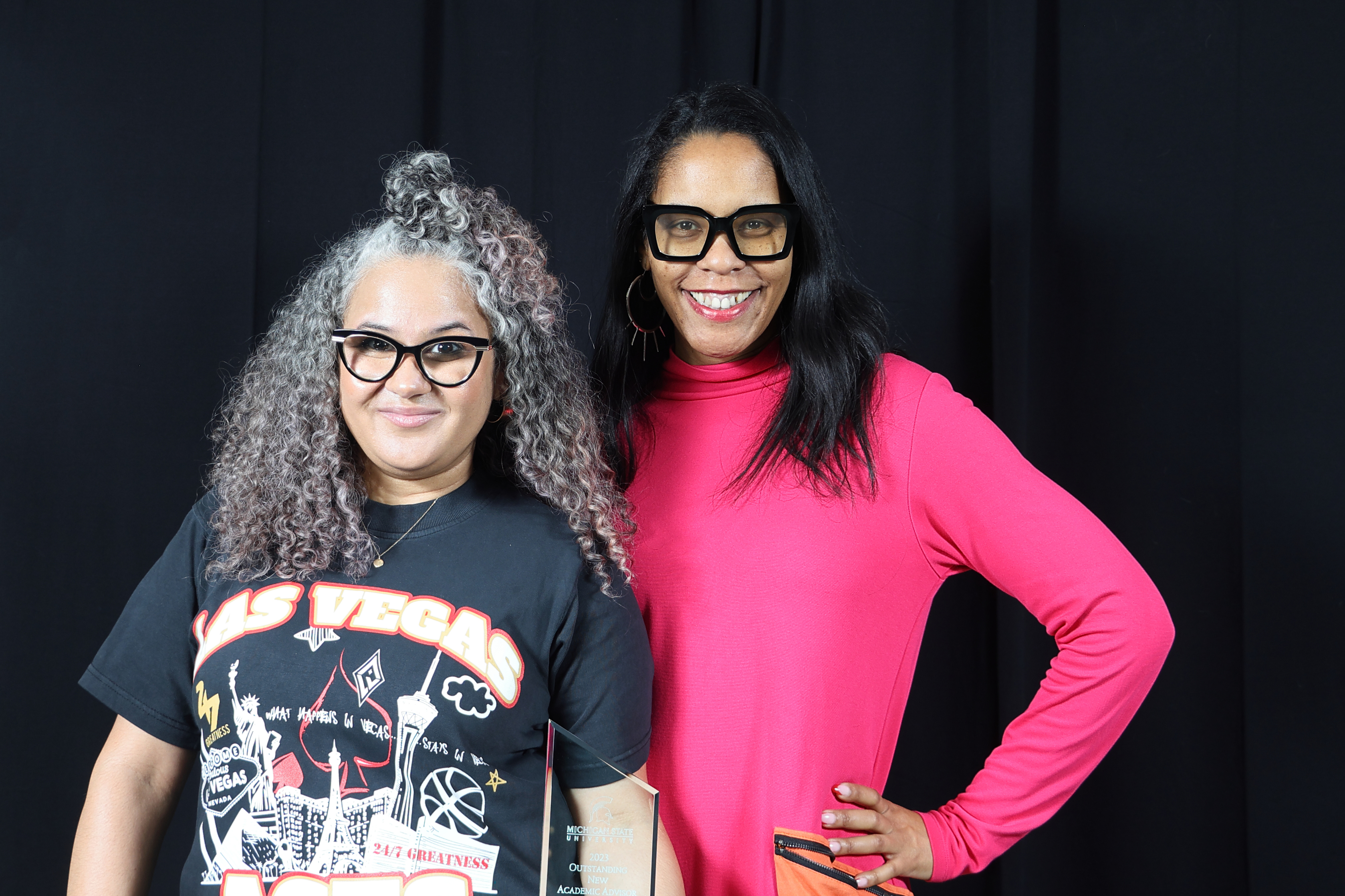 Yvonne Morris, pictured to the right with nominator Ruth Nicole Brown, received the Outstanding New Academic Advisor Award, which recognizes an advisor who has been in the field of advising for three years or less. Yvonne is from the College of Arts and Letters.