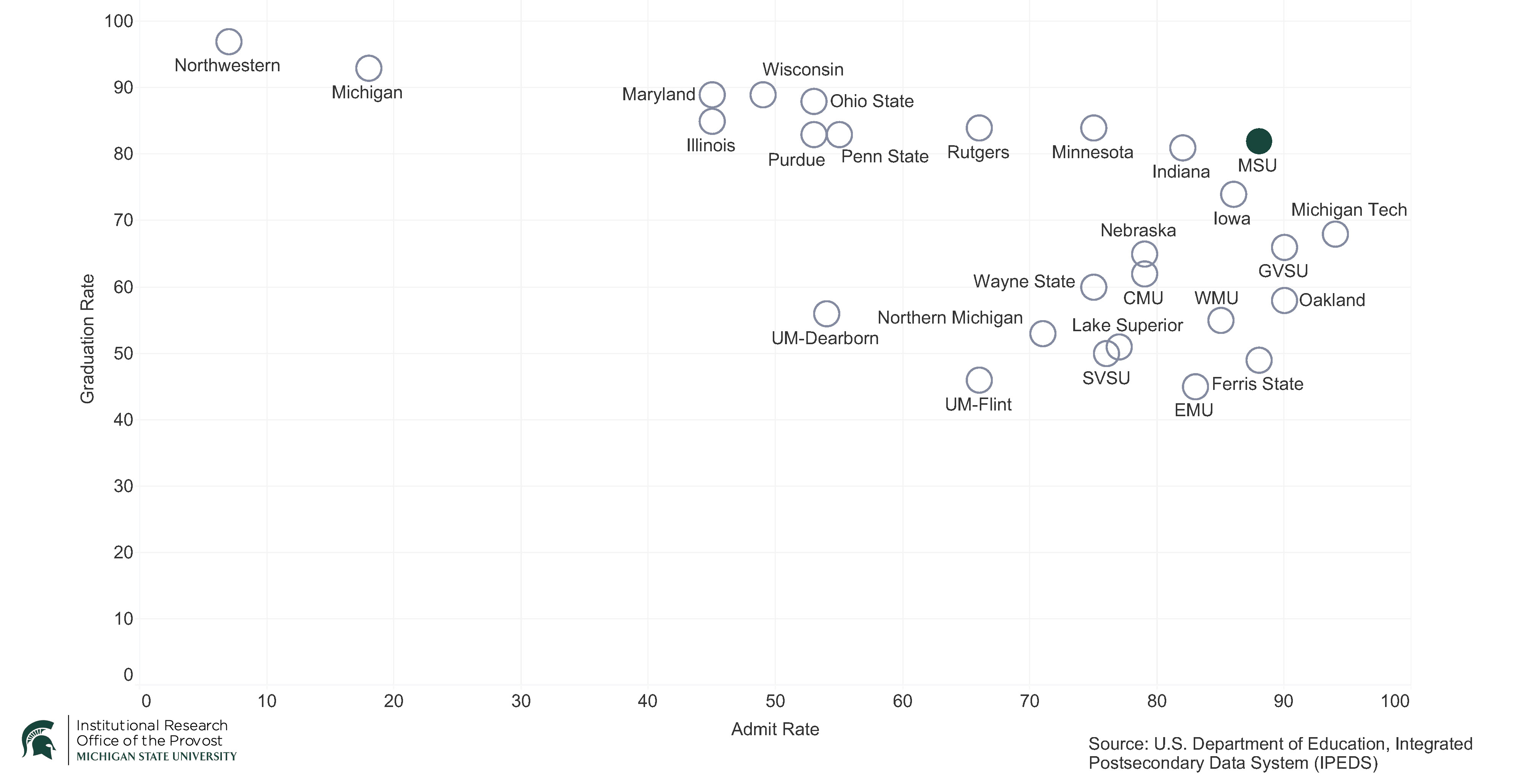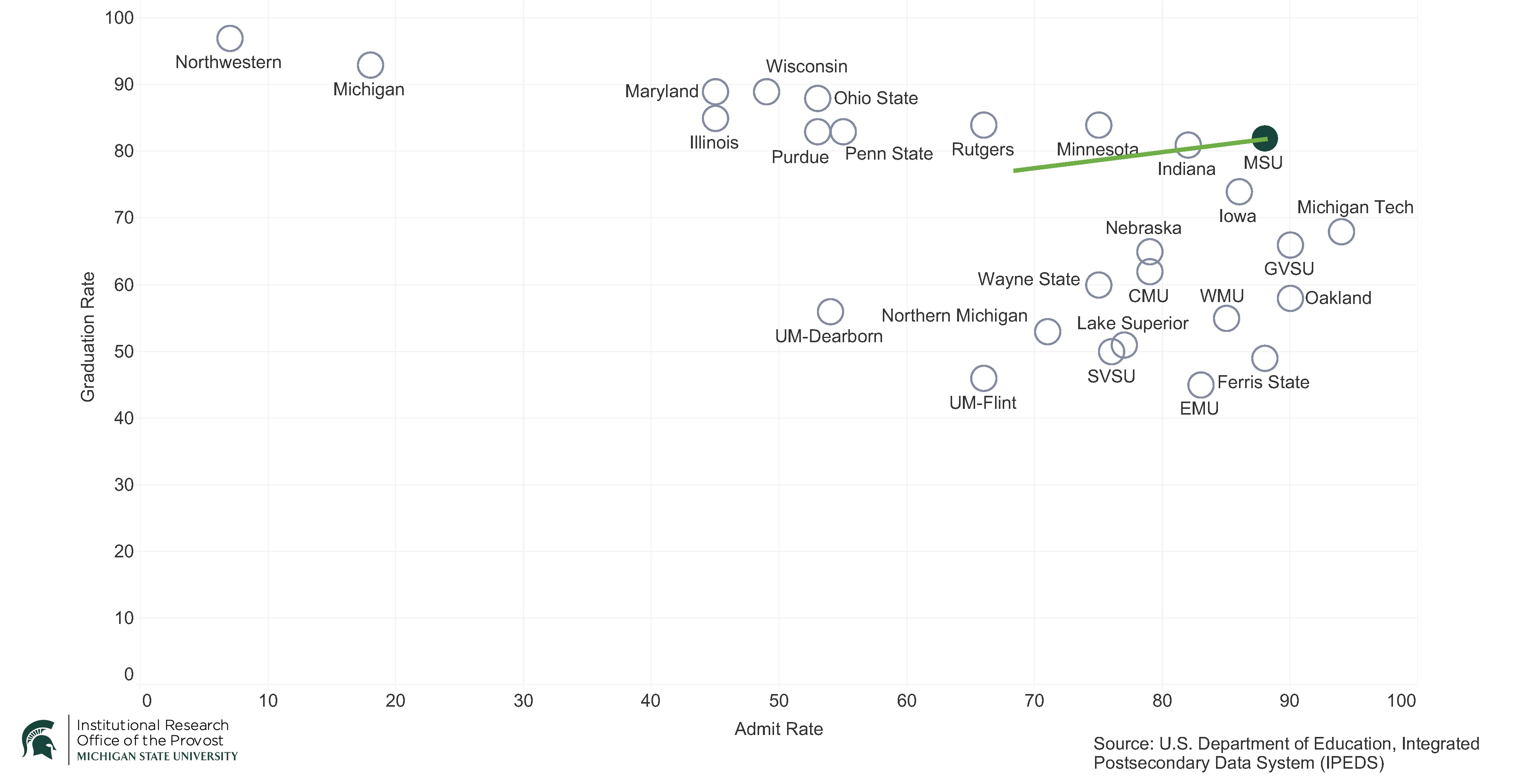 For me, this preliminary analysis and the many questions it raises reaffirm my commitment to continuing the work to move MSU even deeper into the upper right-hand quadrant of that scatter plot chart. It is in that corner that MSU lives out its land-grant mission to offer access and opportunity to students and fulfills its responsibility as Michigan’s state university.
