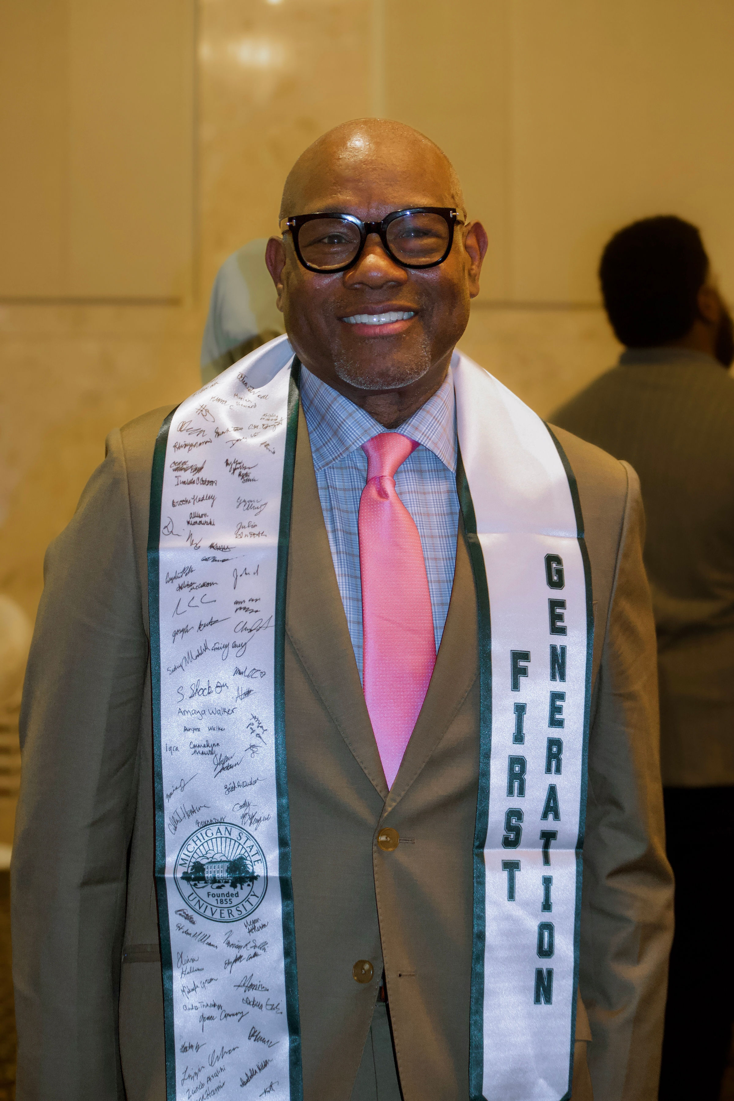 The idea to create a graduation stole for first-gen students began with a generous donation from Mike and Michele Alston who, having been first-generation college students themselves, were keen to support first-gen initiatives. Mike, an MSU alum, said he remembered what it felt like to be new to campus surrounded by peers who seemed to know where to go and what to do, while he himself struggled to find somewhere to get a simple haircut.