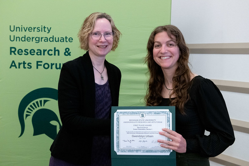 For Urbain, participating in UURAF was a transformative experience that solidified her passion for scientific inquiry and set her on a path toward a future in neuroscience. “Participating really made me realize that research is something I want to pursue full time. Presenting at UURAF gave me the chance to demonstrate the skills I've learned in the lab and allowed me to delve deeper into my project's purpose and real-world implications,” she explained. “I am currently writing a publication about my findings which wouldn't have been possible without the opportunities afforded to me here at MSU. UURAF and this project gave me the opportunity to see if research is a career I wanted to go into, and now they have paved the way for me to start applying to Neuroscience Ph.D. programs this fall.”